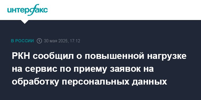Москва. 30 мая. INTERFAX.RU - Роскомнадзор (РКН) сообщил, что его сервис по приему заявок на обработку персональных данных испытывает большую нагрузку, но сейчас проблем в его работе нет.
