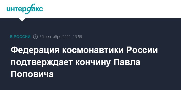 Федерация космонавтики России подтверждает кончину Павла Поповича