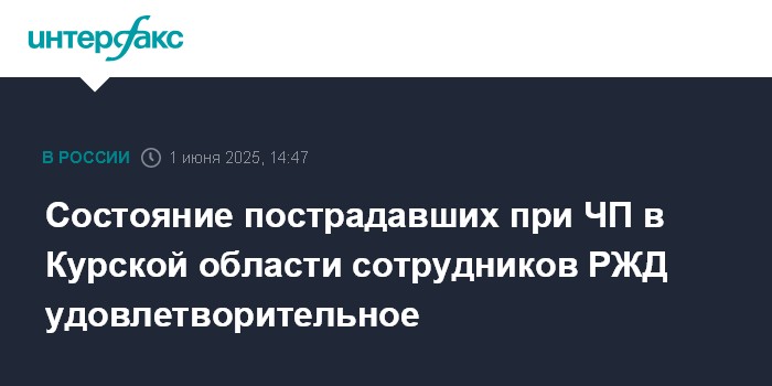 Состояние пострадавших при ЧП в Курской области сотрудников РЖД удовлетворительное
