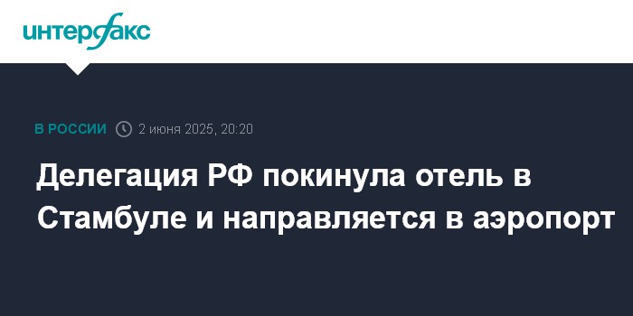 Москва. 2 июня. INTERFAX.RU - Российская делегация покинула отель в Стамбуле и направляется в аэропорт для вылета в Москву после переговоров с украинскими представителями, передал корреспондент "Интерфакса".