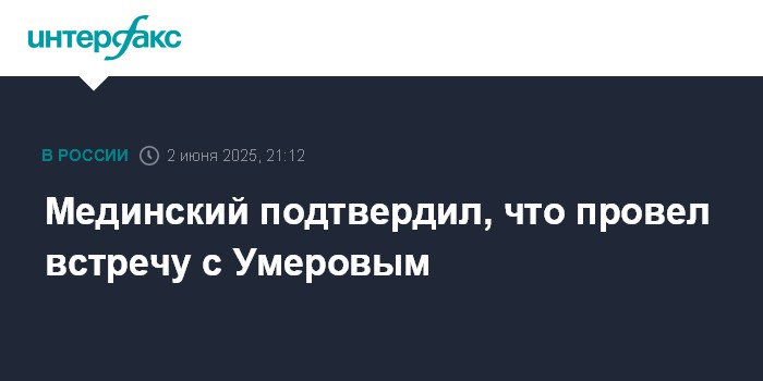 Москва. 2 июня. INTERFAX.RU - Глава российской делегации на переговорах с Украиной Владимир Мединский подтвердил факт встречи с главным украинским переговорщиком Рустемом Умеровым перед основной российско-украинской встречей в Стамбуле.