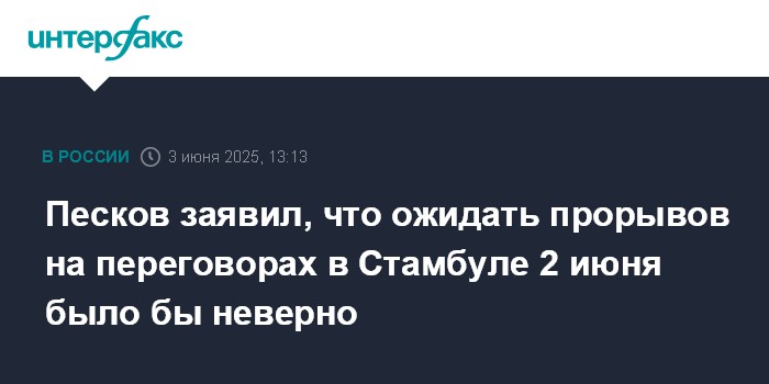Москва. 3 июня. INTERFAX.RU - Ожидать прорывов на переговорах в Стамбуле 2 июня было бы неверно, но важные договоренности были достигнуты, заявил пресс-секретарь президента РФ Дмитрий Песков.