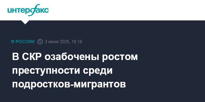"Одним направлением, вызывающим серьезную озабоченность, названо криминальное поведение несовершеннолетних мигрантов. Их преступная активность увеличилась в 2024 году на 8%, а в январе-апреле текущего года - уже на 13%", - говорится в сообщении, размещенном во вторник в телеграм-канале СКР.