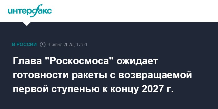Глава "Роскосмоса" ожидает готовности ракеты с возвращаемой первой ступенью к концу 2027 г.