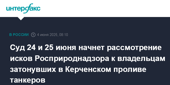 Суд 24 и 25 июня начнет рассмотрение исков Росприроднадзора к владельцам затонувших в Керченском проливе танкеров