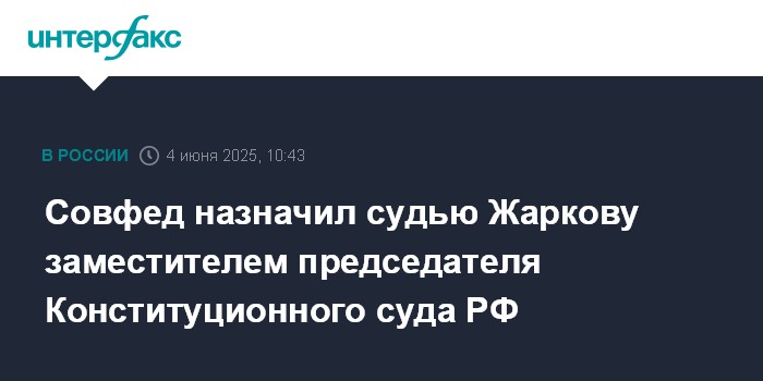 Москва. 4 июня. INTERFAX.RU - Совет Федерации назначил судью Людмилу Жаркову заместителем председателя Конституционного суда РФ.