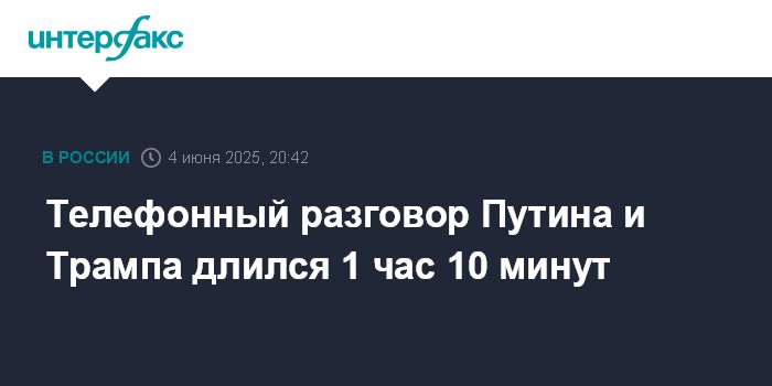 Ранее о разговоре сообщил Трамп в соцсети. По его словам, беседа продолжалась 1 час 15 минут.