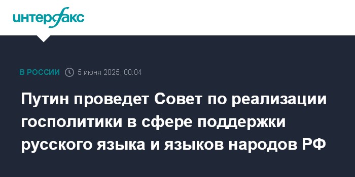 Путин проведет Совет по реализации госполитики в сфере поддержки русского языка и языков народов РФ