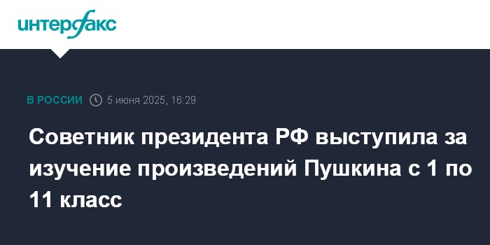 Советник президента РФ выступила за изучение произведений Пушкина с 1 по 11 класс