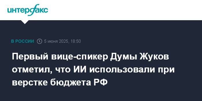Первый вице-спикер Думы Жуков отметил, что ИИ использовали при верстке бюджета РФ
