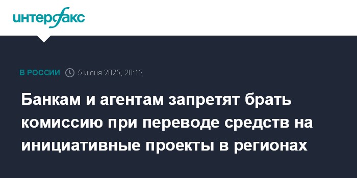 Банкам и агентам запретят брать комиссию при переводе средств на инициативные проекты в регионах