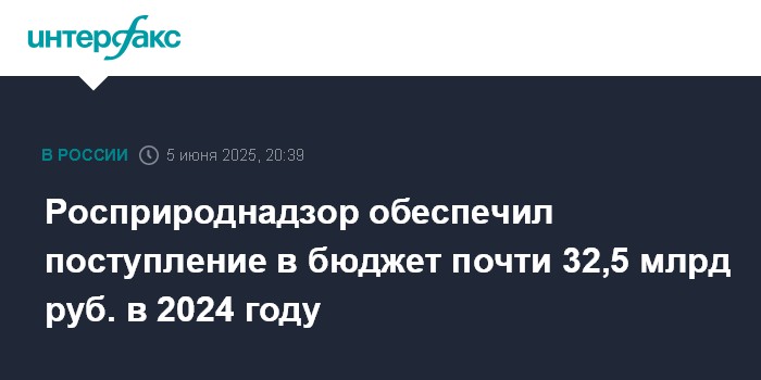 Росприроднадзор обеспечил поступление в бюджет почти 32,5 млрд руб. в 2024 году