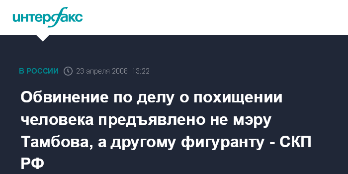 Обвинение по делу о похищении человека предъявлено не мэру Тамбова, а другому фигуранту - СКП РФ