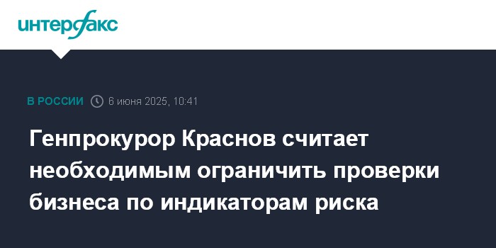 Генпрокурор Краснов считает необходимым ограничить проверки бизнеса по индикаторам риска