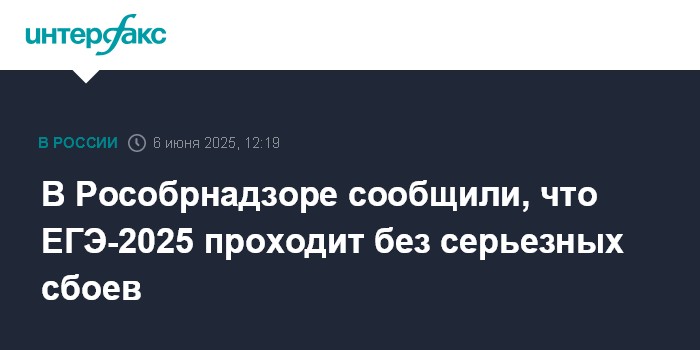 Москва. 6 июня. INTERFAX.RU - Единый государственный экзамен (ЕГЭ) в 2025 году проходит на высоком уровне и без серьезных сбоев, которые могли бы привести к отмене экзамена или его переносу, сообщил глава Рособранадзора Анзор Музаев.