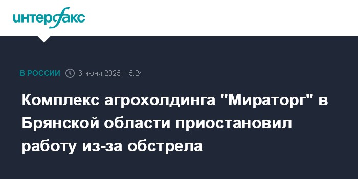 Комплекс агрохолдинга "Мираторг" в Брянской области приостановил работу из-за обстрела