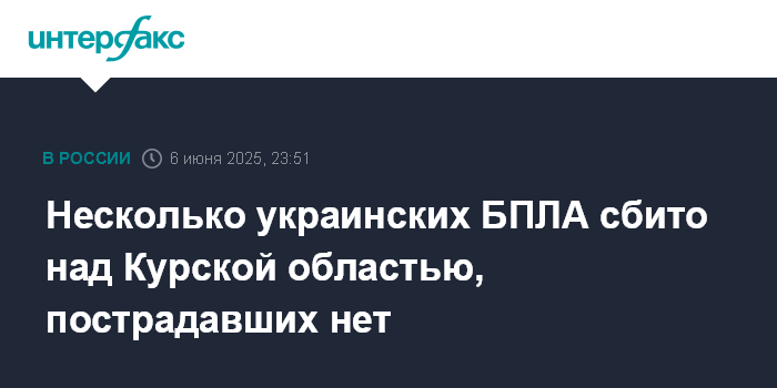 Несколько украинских БПЛА сбито над Курской областью, пострадавших нет