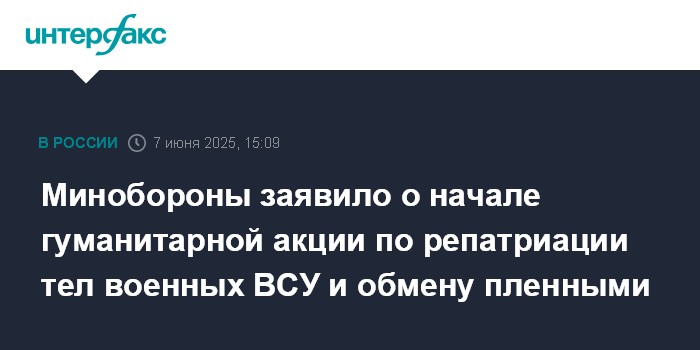 Минобороны заявило о начале гуманитарной акции по репатриации тел военных ВСУ и обмену пленными