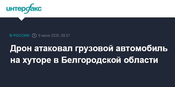 Москва. 8 июня. INTERFAX.RU - Губернатор Белгородской области Вячеслав Гладков сообщил, что в результате удара украинским FPV-дроном по грузовому автомобилю на хуторе Церковный ранен водитель.