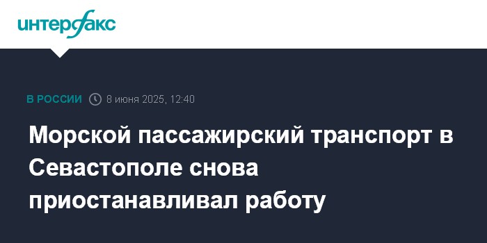 Москва. 8 июня. INTERFAX.RU - В Севастополе движение морского пассажирского транспорта прекращали второй раз за воскресенье.