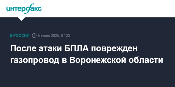 Москва. 9 июня. INTERFAX.RU - В ночь на понедельник украинские беспилотники атаковали Воронежскую область, в результате атаки был поврежден газопровод низкого давления, сообщил глава региона Александр Гусев.