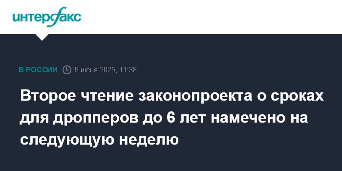 Второе чтение законопроекта о сроках для дропперов до 6 лет намечено на следующую неделю