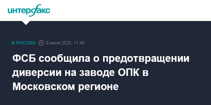 ФСБ сообщила о предотвращении диверсии на заводе ОПК в Московском регионе
