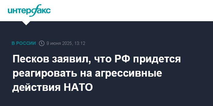 Песков заявил, что РФ придется реагировать на агрессивные действия НАТО