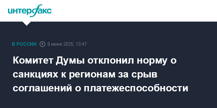 Комитет Думы отклонил норму о санкциях к регионам за срыв соглашений о платежеспособности