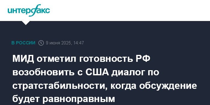 МИД отметил готовность РФ возобновить с США диалог по стратстабильности, когда обсуждение будет равноправным