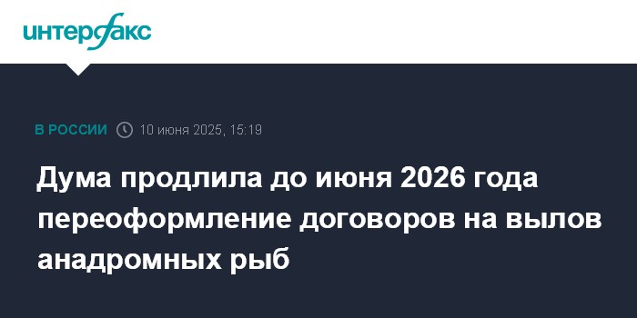 Компании и ИП, имеющие договоры на вылов анадромных видов рыб, действующие по состоянию на 1 сентября 2025 года, могут подать заявление на переоформление до 1 апреля 2026 года, а заключить новый договор - до 1 июня 2026 года. Ранее, во внесенном в первом чтении законопроекте, датой отсечения считалось 1 ноября 2024 года, а сроком завершения процедуры - 30 декабря 2025 года.