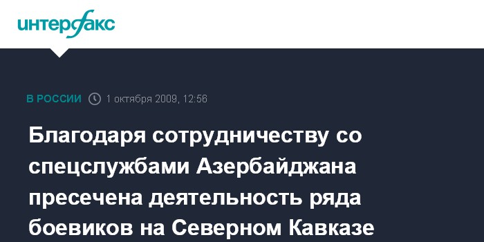 Благодаря сотрудничеству со спецслужбами Азербайджана пресечена деятельность ряда боевиков на Северном Кавказе