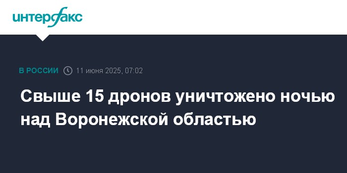 Москва. 11 июня. INTERFAX.RU - Губернатор Воронежской области Александр Гусев сообщил о ликвидации более 15 беспилотников над регионом ночью.