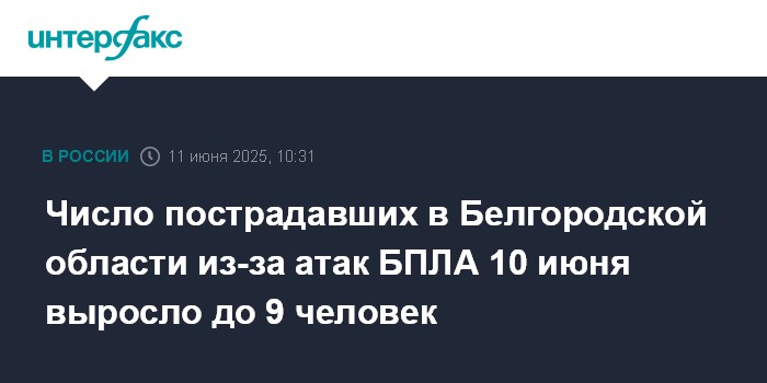 Число пострадавших в Белгородской области из-за атак БПЛА 10 июня выросло до 9 человек