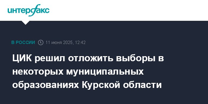 Москва. 11 июня. INTERFAX.RU - Центризбирком решил отложить голосование на выборах, которые должны были состояться 14 сентября 2025 года на территории восьми муниципальных районов Курской области.