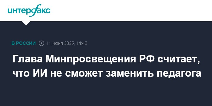 Москва. 11 июня. INTERFAX.RU - Искусственный интеллект (ИИ) и информационные технологии никогда не заменят педагогов в системе образования, но могут облегчить их работу, считает министр просвещения РФ Сергей Кравцов.