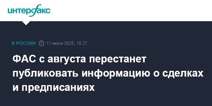 ФАС с августа перестанет публиковать информацию о сделках и предписаниях