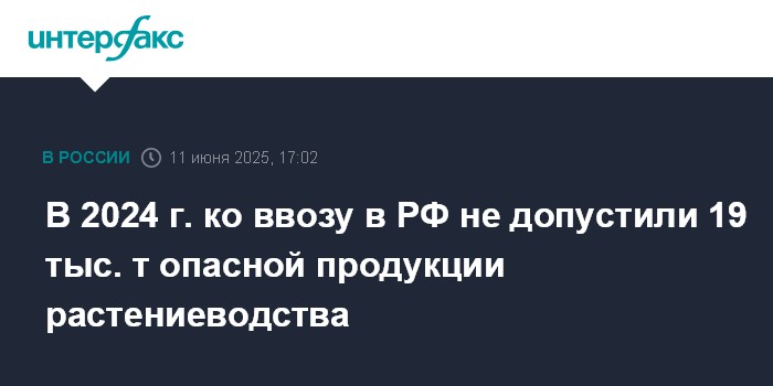 В 2024 г. ко ввозу в РФ не допустили 19 тыс. т опасной продукции растениеводства