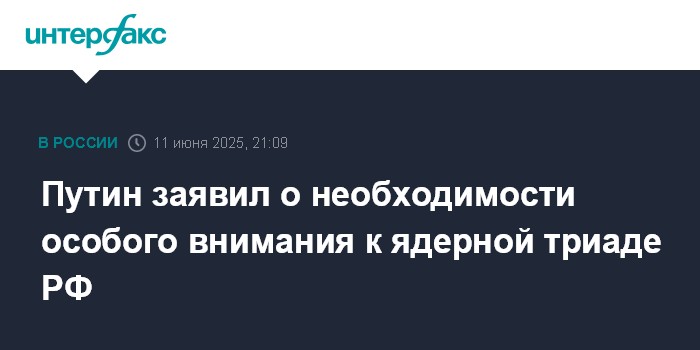 Москва. 11 июня. INTERFAX.RU - Особое внимание в новой государственной программе вооружений нужно уделить ядерной триаде, заявил президент РФ Владимир Путин.