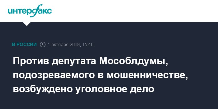 Против депутата Мособлдумы, подозреваемого в мошенничестве, возбуждено уголовное дело