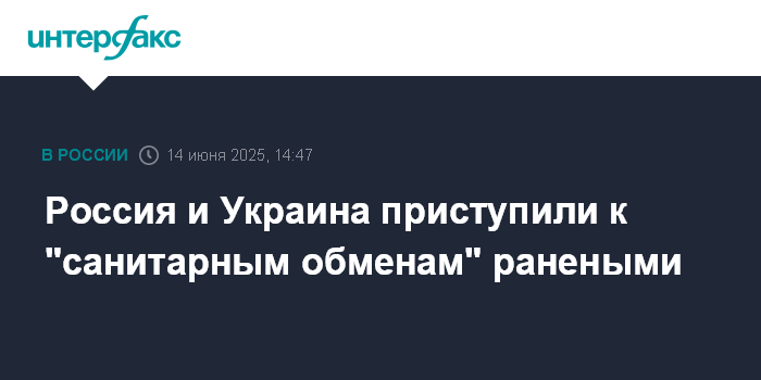 Москва. 14 июня. INTERFAX.RU - РФ и Украина начали так называемые санитарные обмены ранеными военнослужащими, сообщил "Интерфаксу" источник, знакомый с российской переговорной группой.