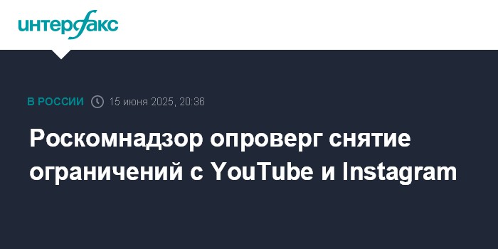 Москва. 15 июня. INTERFAX.RU - Роскомнадзор заявил об отсутствии оснований для снятия ограничений с работы в РФ сервиса Instagram (ресурс корпорации Meta, чья деятельность признана судом экстремистской и запрещена в РФ) и видеохостинга YouTube.