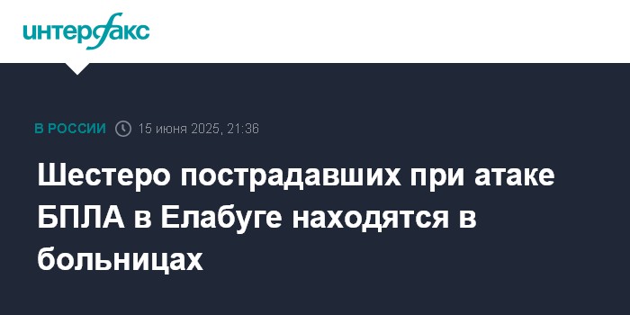 Москва. 15 июня. INTERFAX.RU - На лечении в больницах находятся шесть пострадавших при атаке БПЛА в Татарстане, один из них в тяжелом состоянии, сообщил помощник министра здравоохранения РФ Алексей Кузнецов.