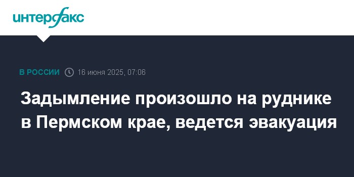 Задымление произошло на руднике в Пермском крае, ведется эвакуация