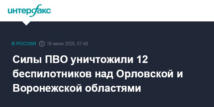 Силы ПВО уничтожили 12 беспилотников над Орловской и Воронежской областями