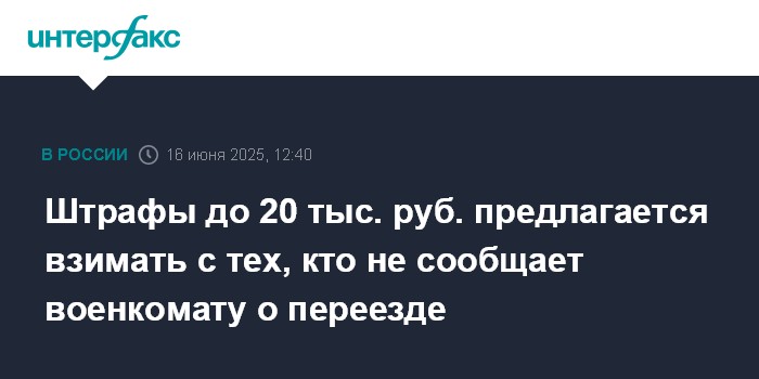 Штрафы до 20 тыс. руб. предлагается взимать с тех, кто не сообщает военкомату о переезде