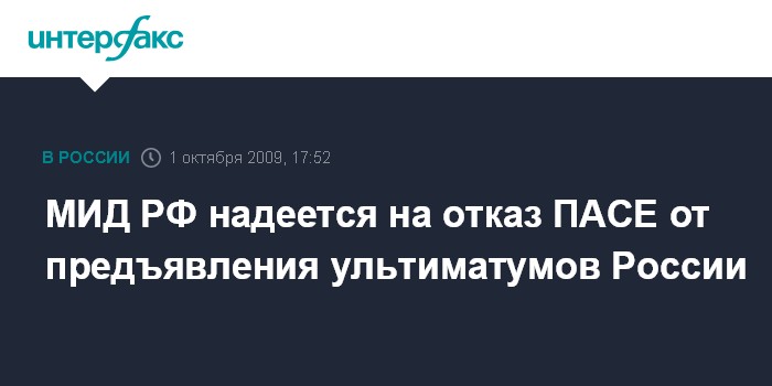 Москва. 1 октября. INTERFAX.RU - В МИД России рассчитывают, что ПАСЕ впредь воздержится от ультиматумов в адрес России.