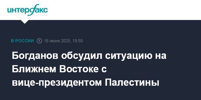 Богданов обсудил ситуацию на Ближнем Востоке с вице-президентом Палестины