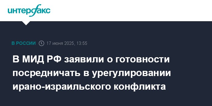 В МИД РФ заявили о готовности посредничать в урегулировании ирано-израильского конфликта