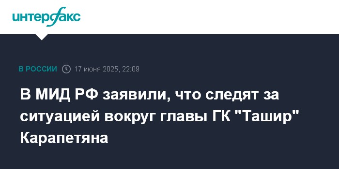 В МИД РФ заявили, что следят за ситуацией вокруг главы ГК "Ташир" Карапетяна